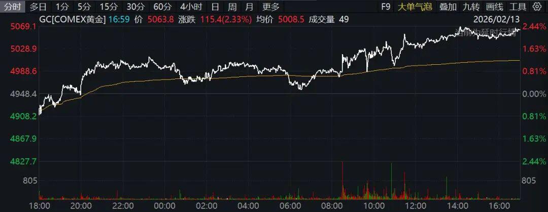 国际金银大幅收涨,COMEX黄金期货收涨2.33%,报5063.8美元/盎司,本周累计上涨1.51%;COMEX白银期货收涨2.1%,报77.27美元/盎司,本周累计下跌0.33%。