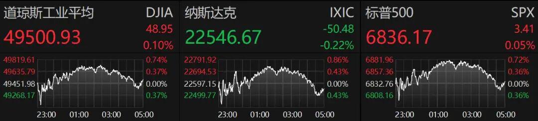 隔夜美股冲高回落。国际黄金大涨。