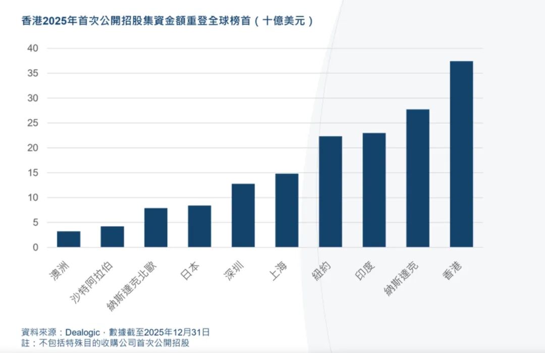 据港交所官方数据显示,2025其IPO募资额达到374亿美元,约合2923亿港元,创近年新高,超过前三年的总和。这也是港交所时隔四年再次登上世界榜首。