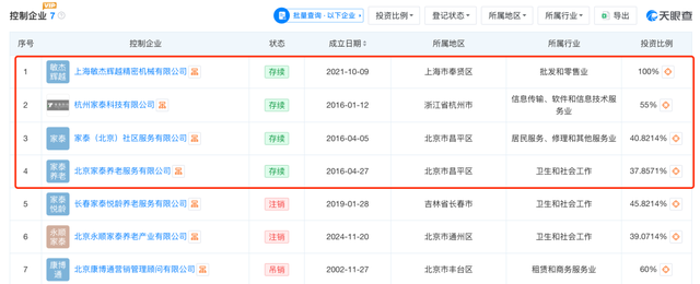 天眼查显示,周建忠除任职上市公司外,还通过直接或间接持股,实际控制 4 家存续企业,业务覆盖批发零售、信息技术、社区服务、养老等领域;与此同时,他操盘葵花集团健康酒、大健康科技等相关业务。