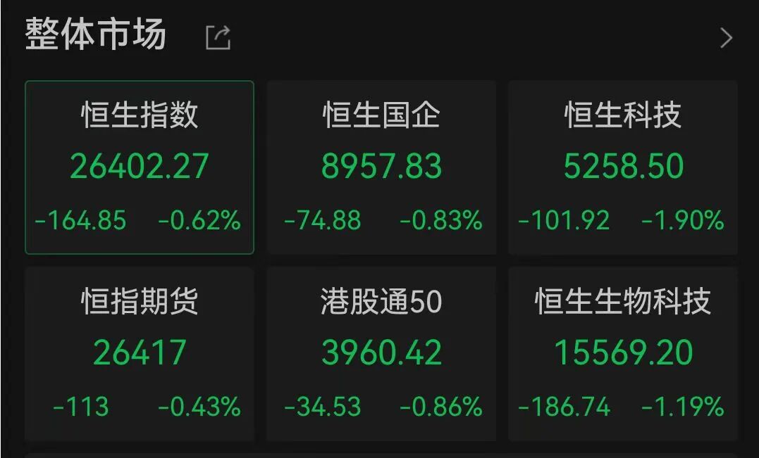 港股科网股普跌,阿里巴巴、小米集团、美团跌超3%。宁德时代涨超2.8%。