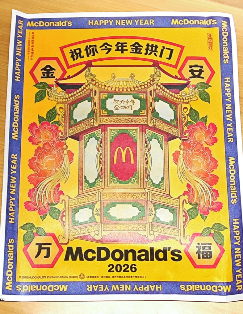 1955年创立于加利福利亚州的金拱门,终于如愿以偿地在2026年的春节活成了中华老字号。