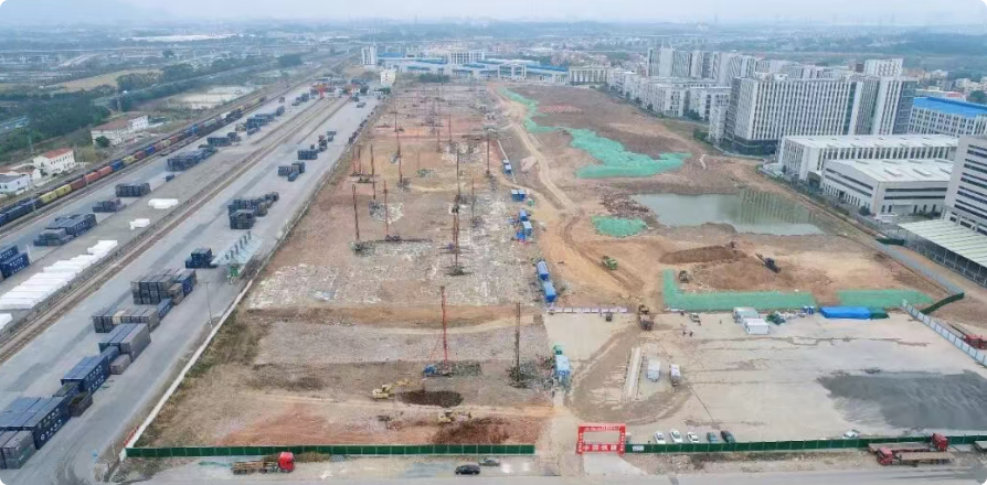 从广佛腹地一路向西,珠三角的城乡风貌在暖阳中徐徐铺展,宛如一幅生机勃勃的发展长卷。正值“爆竹声中一岁除,春风送暖入屠苏”的浓浓新春时节,佛山丹灶铁路物流基地公共设施工程的施工现场,却已是一派奋进的火热景象。