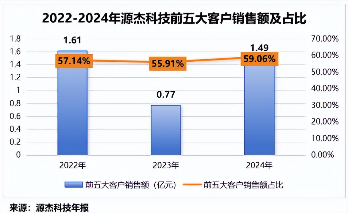 2022-2024年,公司前五大客户销售额占比高达55%及以上,为公司的持续发展建立了良好的市场基础。