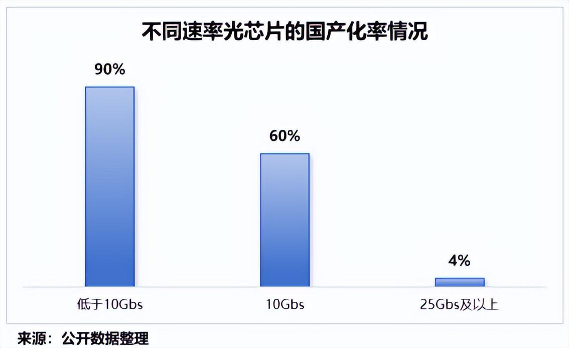 数据显示,我国25G光芯片国产化率约25%,而25G以上超高速光芯片国产化率则仅4%。