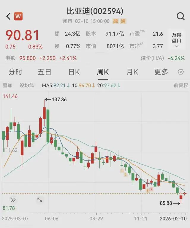 •比亚迪股价跌了近4成,市值少了4500多亿;