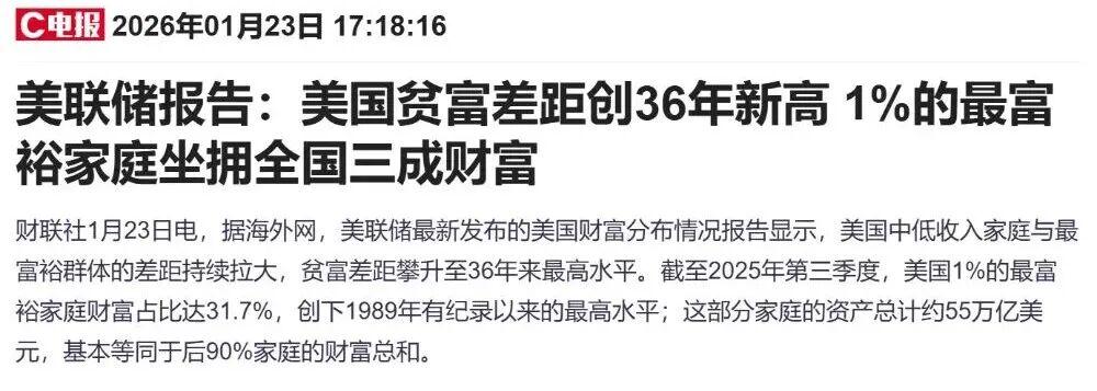 美联储 也 发出惊呼,美国贫富差距创下了36年的新高。