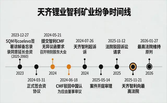 从2024年5月向智利金融市场委员会申请召开特别股东大会,到6月申请被驳回后提起行政复议,再到7月正式向智利法院起诉,直至2026年1月终审败诉,天齐在智利国内能走的法律途径全试了个遍,最后还是没能改变结果。