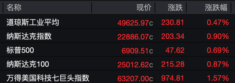 美最高法院的裁决为美国经济带来了久违的“确定性”。昨夜,美股三大指数均收涨。科技股普涨,美国科技七巨头指数涨超1.5%。