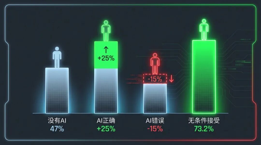 研究者将这种现象命名为“认知投降”(Cognitive Surrender)——不是用AI辅助思考,而是放弃思考本身,把判断权完全交给机器。