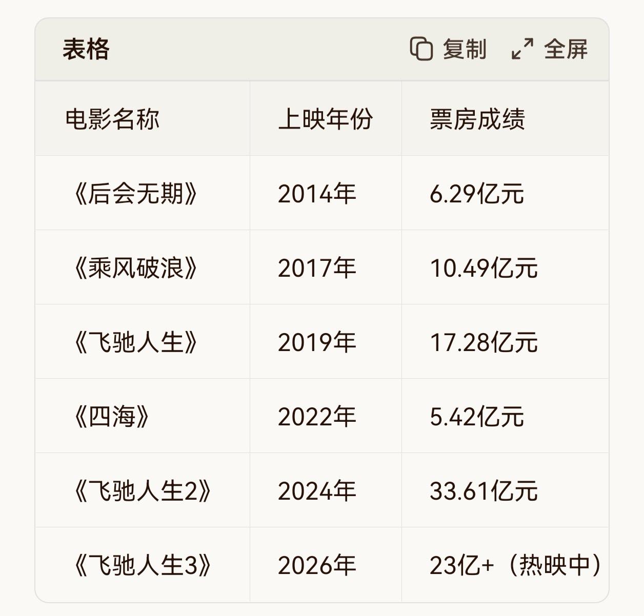 《后会无期》取得成功后,2015年,韩寒成立亭东影业,开始自己投入操盘。从第二部《乘风破浪》到《四海》,再到《飞驰人生》3部,亭东影业成为了最大的投资方。韩寒出钱最多,承担最大的风险,但也获得了最高的回报。
