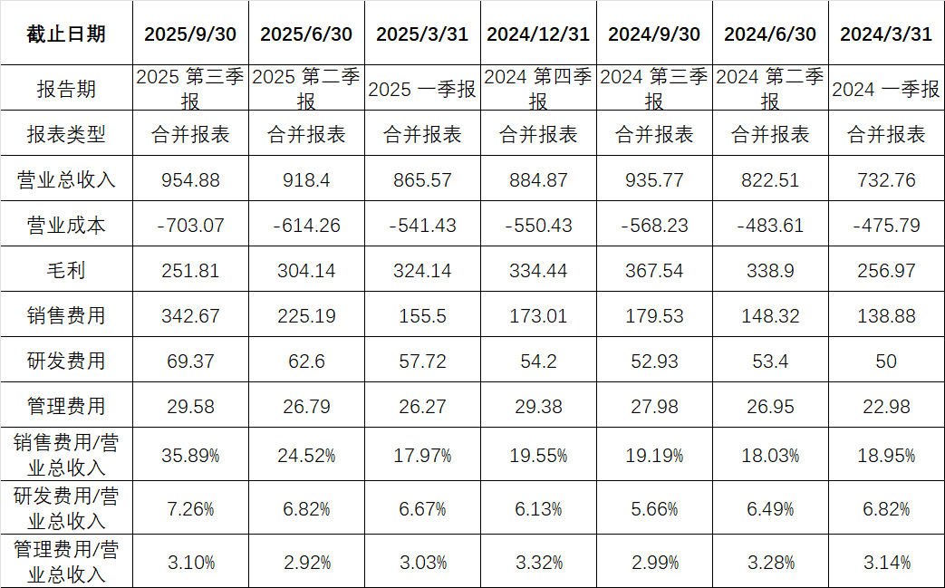 据Wind数据显示,美团2025年前三季度的销售费用分别为155.5亿元、225.19亿元和342.67亿元,占营业收入的比例分别为17.97%、24.52%和35.89%,呈现逐季度大幅攀升的态势,足以看出行业竞争压力正呈几何级增长,美团为守住市场份额已付出巨大代价。