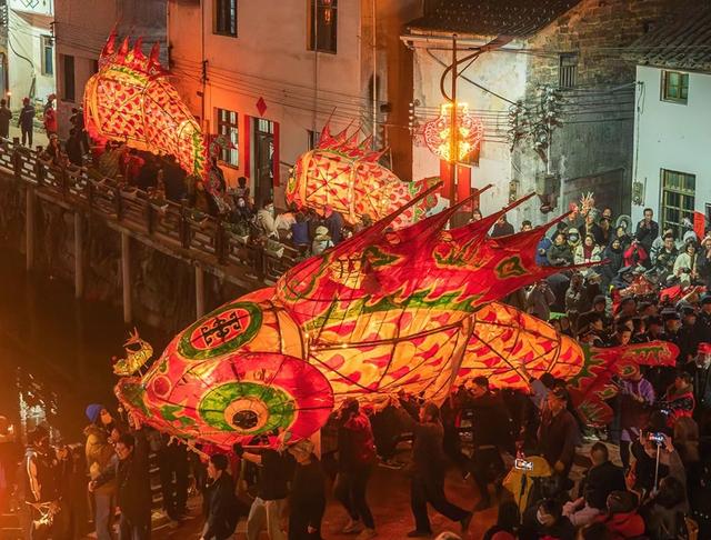 汪满田鱼灯起源于明代,距今已有600余年历史,以规模宏大、声势浩大著称,最大的鱼灯长达10米;瞻淇鱼灯可追溯至宋代,已传承超800年,两人舞动,动作灵动如鱼跃龙门,寓意吉祥顺遂。对于当地人来说,鱼灯一亮,年味就有了。