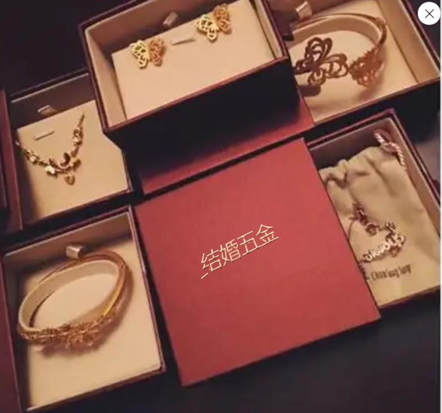 但是,彩礼习俗仍旧存在,未曾因为当代婚姻制度之转变而消亡,并有愈演愈烈的趋势。彩礼中,五金(有部分地区为三金)更是成为传统婚嫁习俗中必需的黄金饰品组合。通常男方需要为女方购买包括金耳环、金手镯、金项链、金戒指和金吊坠五种。这些饰品在婚礼中象征吉祥与富贵,总克数普遍在50克至80克之间。随着黄金价格暴涨,一套五金的整体价格已经突破了10万元,相当于体制内年轻公务员一年或者体制外年轻打工一族两年不吃不喝的总收入。