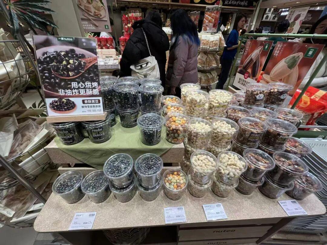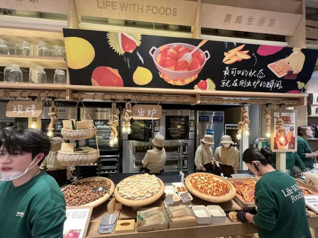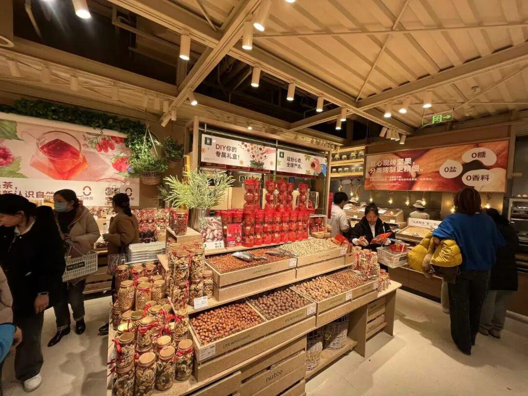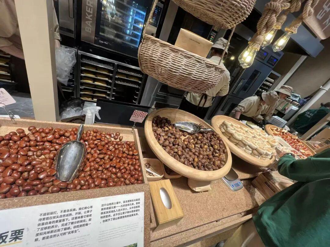 一栗nutco设置了比较大的现制区,现烤坚果、板栗、面包、红薯干,现制果酱等。