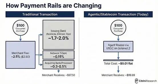 人工智能代理商们开始寻找比银行卡更快更便宜的支付方式。大多数代理商最终选择使用通过Solana 或以太坊 L2 层级支付的稳定币,这种方式结算几乎是即时的,交易成本也仅为几美分。