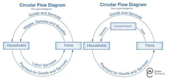 产出依然存在。但它不再像以前那样通过家庭流回企业,这意味着它也不再经过美国国税局。循环流程正在中断,预计政府将介入修复这一问题。