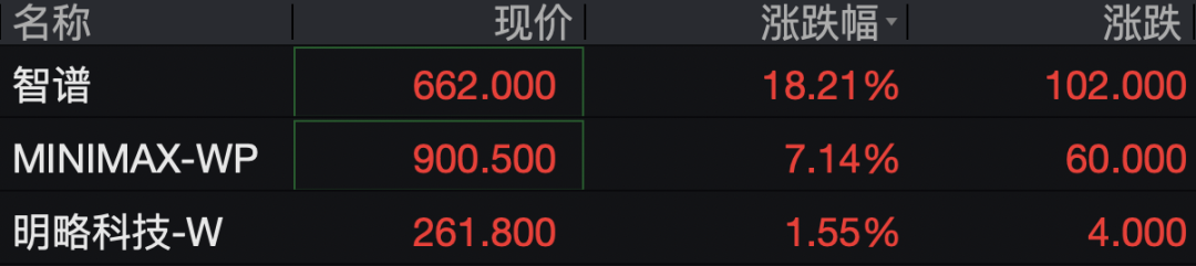 2月24日, 港股大模型股再度走强,截至发稿,智谱大涨超18%,报662港元/股;MINIMAX-WP涨超7%,报900.5港元/股。