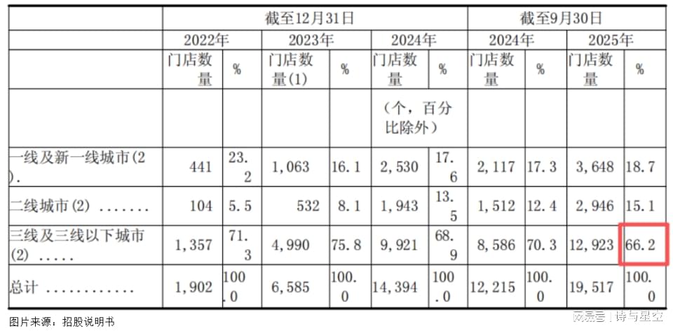 2023年,双方完成战略合并,组建“鸣鸣很忙集团”,实现资源互补与规模协同。这一合并绝非简单叠加,招股书显示,截至2025年9月30日,19517家门店中,59%位于县城及乡镇,充分体现了其“农村包围城市”的扩张策略。
