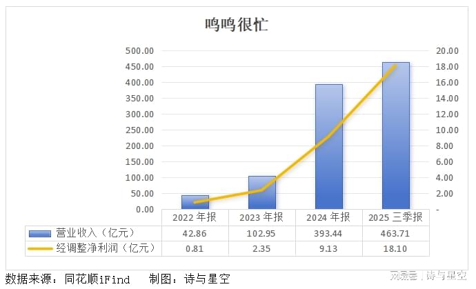 基于强大的供应链和快速扩张的门店,鸣鸣很忙的财务表现堪称“火箭式增长”。