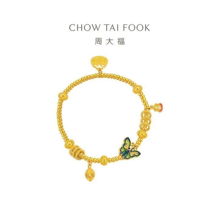 除了五帝钱盘缠手串,一条金重18克的传承蝴蝶手链,目前天猫售价为40600元,相当于2250元/克,根据代购的消息,这轮涨价后将上调至50800元,相当于2815元/克。
