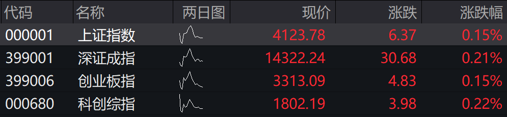 沪指高开0.15%,深成指高开0.21%,创业板指高开0.15%,科创综指高开0.22%。