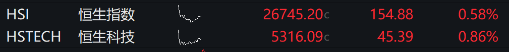 恒生指数高开0.58%,恒生科技指数涨0.86%。海底捞、中国宏桥、小鹏汽车、金蝶国际、携程集团涨逾2%。
