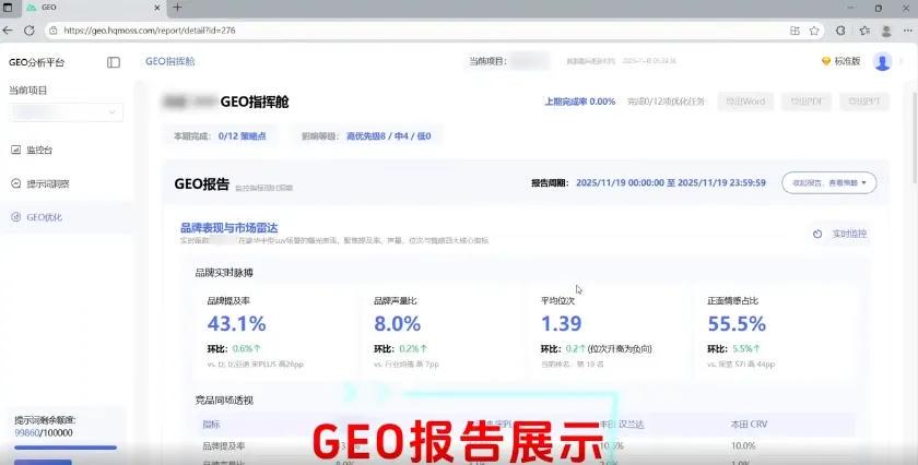 易点天下研发了 GEO KPI 仪表板,通过监控“ AI 可见性得分”等指标,逐步替代纯流量视角的考核;浙文互联的「HochiGEO」方案则更为激进,通过自研模型监测提及率、声量比、内容匹配度等七项指标,试图还原品牌在 AI 语境下的真实权重。