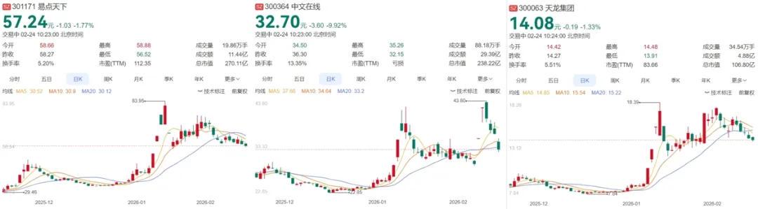 据中国信通院统计,2025年超68%中大型企业将GEO纳入年度预算;资本市场态度积极,GEO概念股持续飘红,“易中天2.0”(易点天下、中文在线、天龙集团)年内分别涨41%、31%、65%(截至2月24日收盘)。