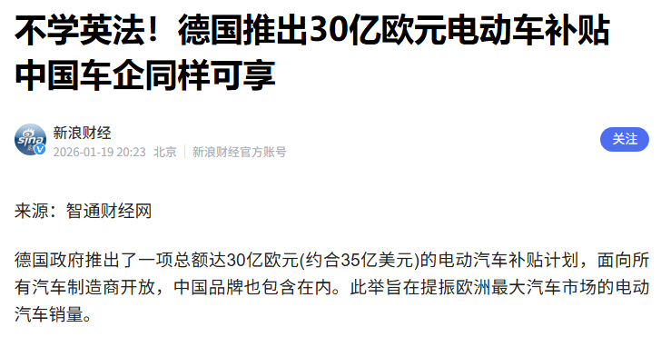 就在这次出发前,德国推出30亿欧元的电动汽车专项补贴,这份补贴不光德国车企可以拿,对中国车企也不设置任何门槛,只要是在德国市场销售的电动汽车,不管是哪个国家的品牌,都可以申请。