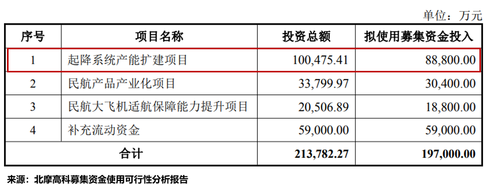 预案显示,其中,有8.88亿元用于起降系统产能扩建项目。