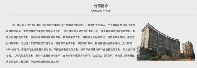 据建林电气的官网介绍,其是一家以电气技术研发生物智慧控制伺服---控制仿生机器人,用互联网无线协议打通物联网智能设备、整合智慧城市手机数据中心大平台的公司。
