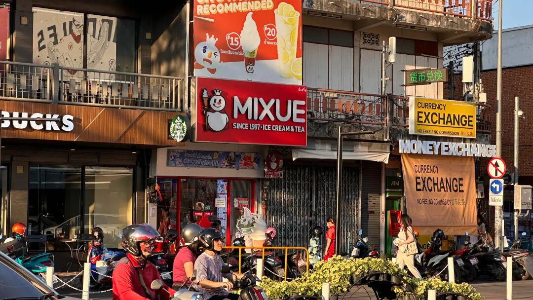 近十天的假期里,《国际金融报》记者在普吉和清迈两座城市看到不少熟悉身影:长城欧拉、比亚迪、哪吒汽车、深蓝汽车行驶在泰国街道;蜜雪冰城、奈雪的茶、海底捞、泡泡玛特、名创优品等品牌门店入驻综合商场;超市饮料柜上出现了农夫山泉东方树叶、元气森林气泡水和王老吉凉茶等国内畅销单品。