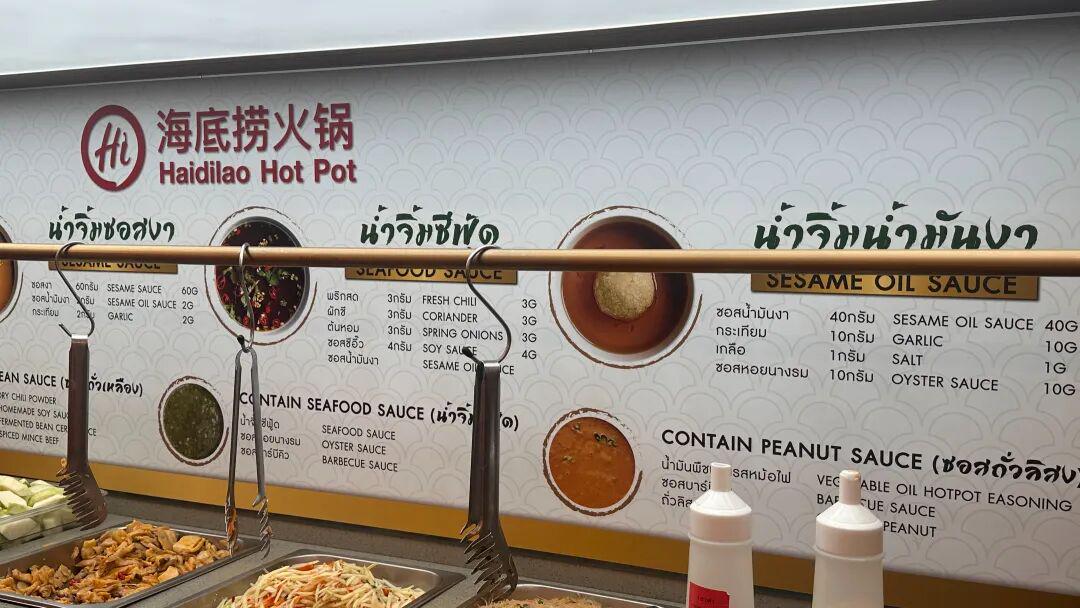 海底捞门店工作人员向《国际金融报》记者介绍,为适配泰国本地市场口味,小料台上除了西瓜,还准备了当地水果芒果条和芭乐,并提供三种泰式特色蘸料,同时还推出冬阴功汤泰式锅底,在保留中国火锅核心风味的基础上,融入当地饮食特色。