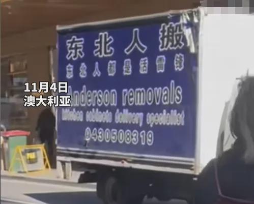 澳大利亚街头,有人看到写着“东北人搬家”的车行驶在路上。