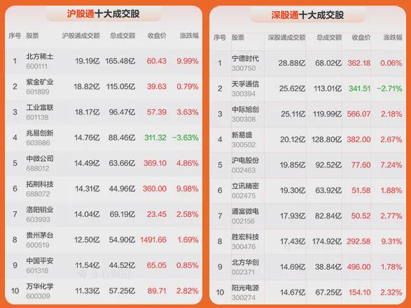 4、北向资金共成交3195.37亿元,占两市总成交额的12.98%——