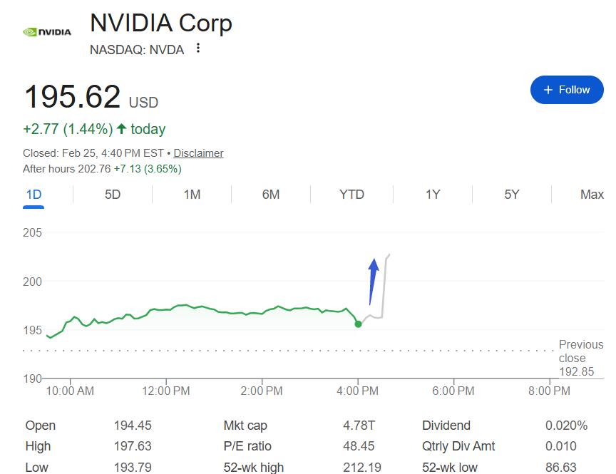 以营收指引中值计算,相当于英伟达预计一季度营收将同比增长76.9%,较四季度的增速73%进一步加快。