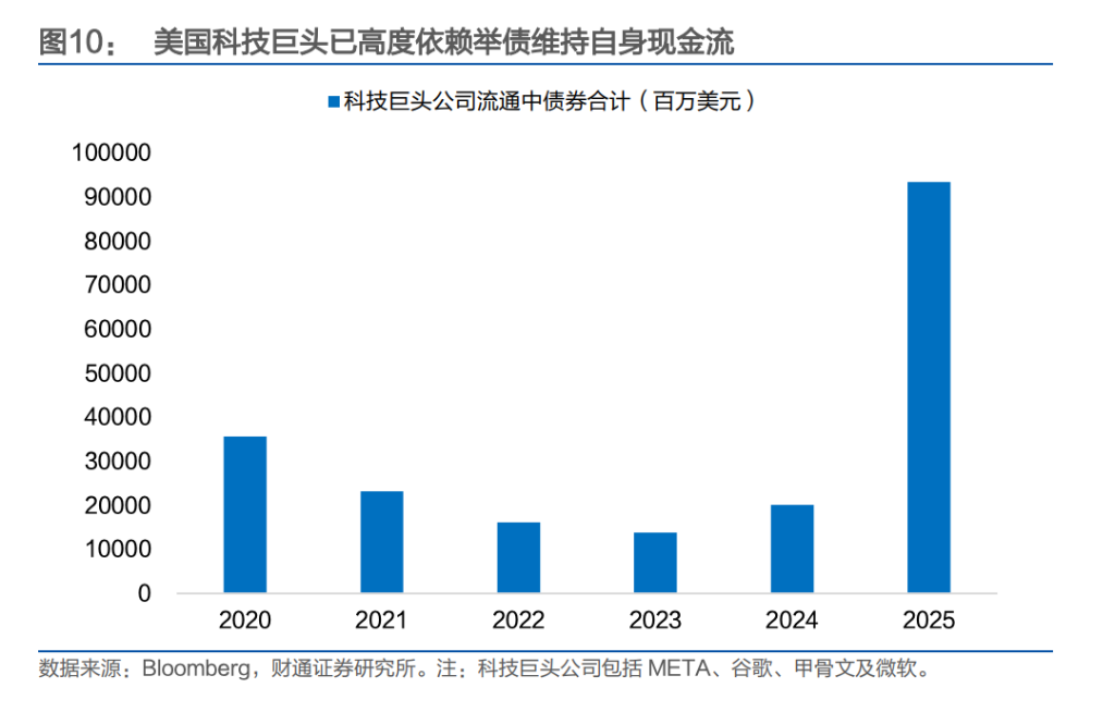财通证券指出,若特朗普不大幅降息,高利率将抑制企业投资,同时威胁高度依赖举债的AI资本开支。Meta、Alphabet、亚马逊和甲骨文的AI基建投资已高度依赖债务融资。2025年第二、三季度,AI相关投资对美国GDP增速贡献分别达0.9%和0.8%,美国经济对这一支出的依赖度已显著上升。