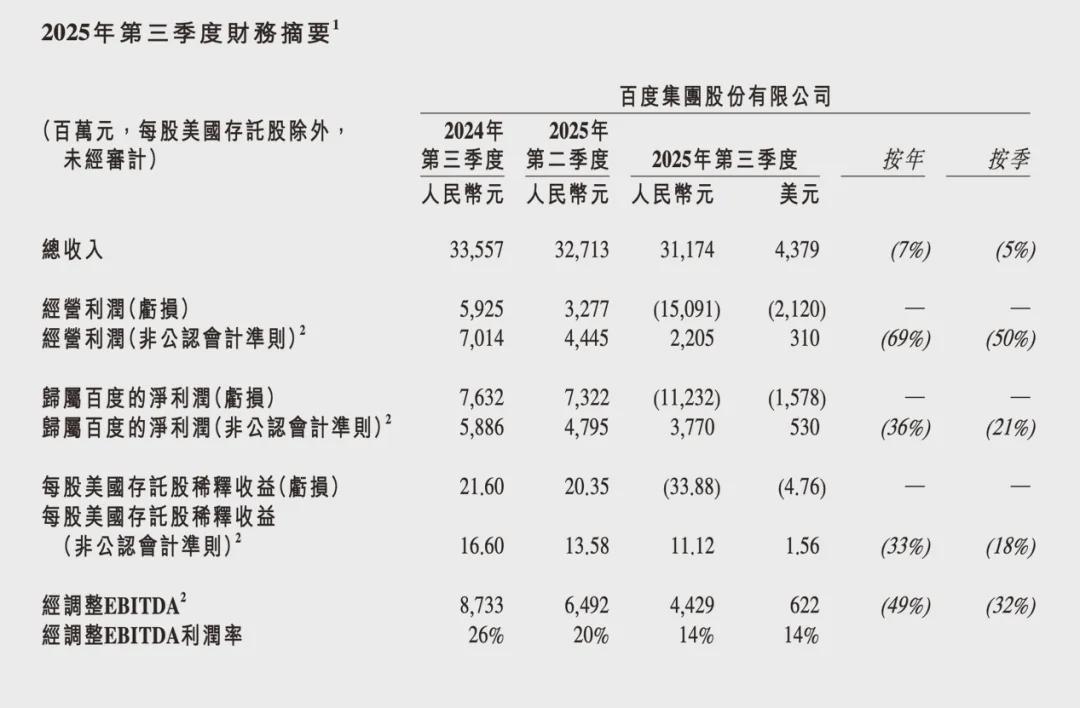 百度2025年三季度财报,堪称史上最惨成绩单。