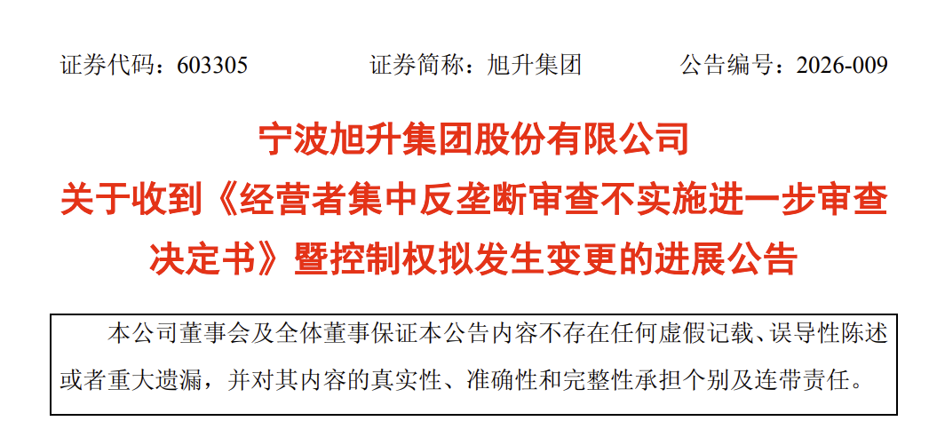 旭升集团在公告中说明,此前在2026年2月6日,公司收到广州工控集团通知,广州市人民政府国有资产监督管理委员会已出具了《广州市国资委关于广州工控集团并购宁波旭升集团股份有限公司有关事项的批复》。