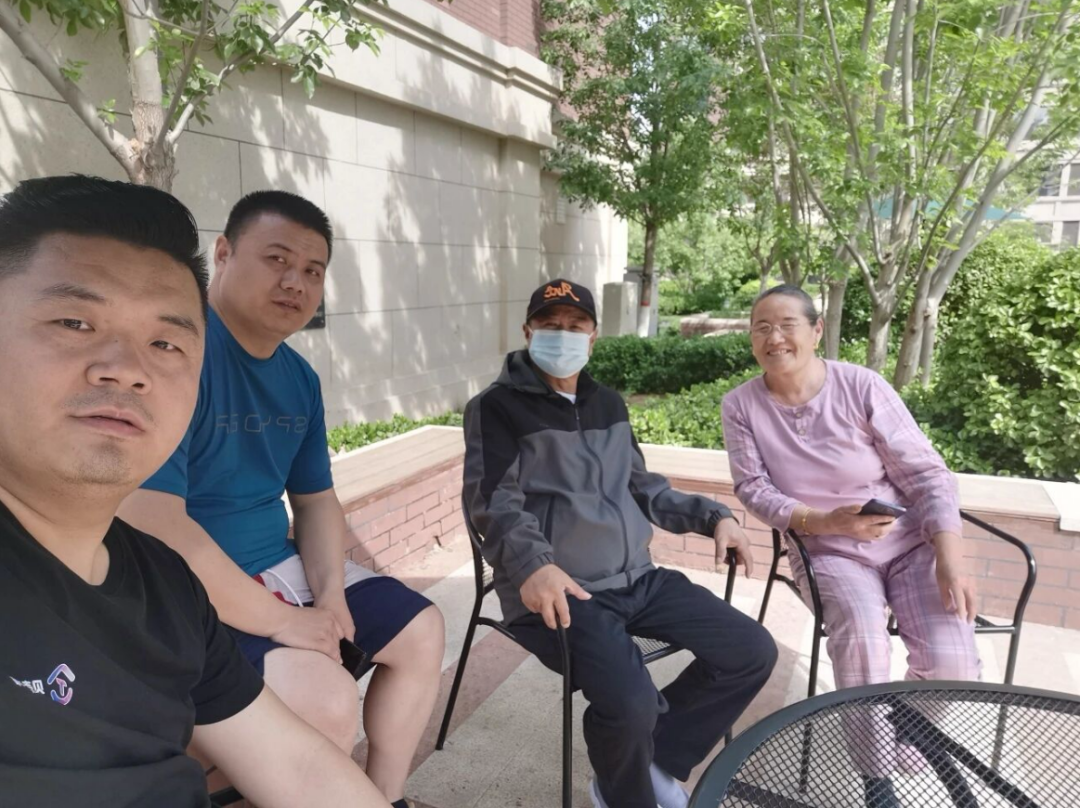 北京链家经纪人盛俊红(中)一家三口一起参加搏学大考