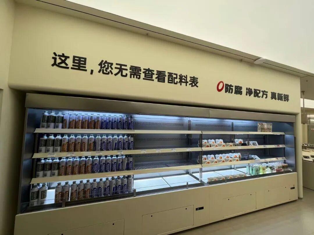 几多全的门店商品陈列,目测看是基于保质期维度来做陈列规划的,从门店进口到内,商品按保质期长短排列,入口是通过冷藏柜售卖3-7天保质期的新鲜零食、奶茶等商品。再后就是半个月保质期、1个月保质期、半年保质期、一年保质期的不同品类商品。呈现出由外到内的“阶梯性”分布。