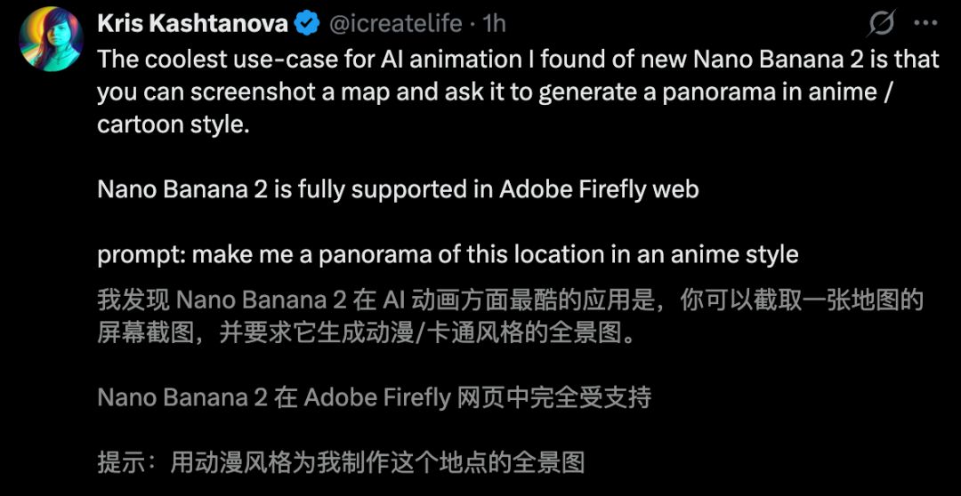 甚至,可以随意截取一张地图,让NB2生成一张卡通风格的全景图。