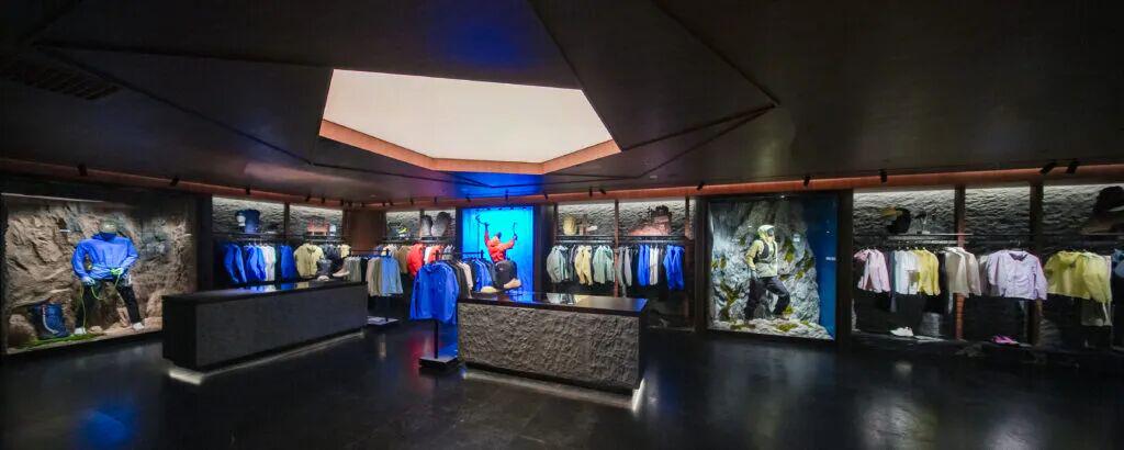 让我们将目光再拉回集团旗舰品牌始祖鸟。2025年8月,在北京王府半岛启幕全球首家的ARC'LOUNGE出发地门店,不仅是零售空间,更是探索者在城市中的精神原点。在这里,高山故事被融入都市肌理:门店以“精神大本营”重新定义零售空间。同年雪季,始祖鸟将山地课堂带至新疆禾木等三大雪场的“目的地门店”,两者串联成从城市去向山野的完整户外探索闭环。