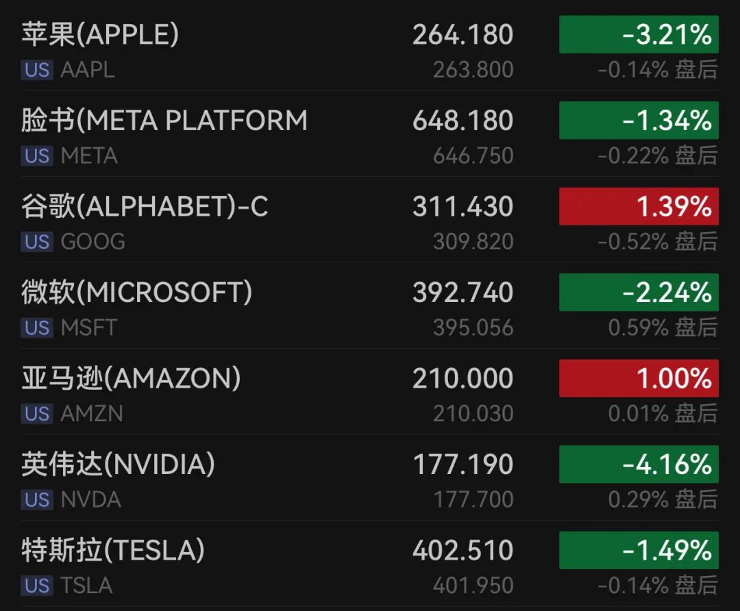 科技板块继续拖累指数表现,英伟达延续此前一日颓势重挫4.2%,此前一日已跌5.5%,显示投资者对人工智能相关资本支出与回报周期的不确定性保持谨慎。特斯拉跌1.49%,微软跌2.24%,苹果跌3.21%,谷歌-A涨1.42%,亚马逊涨1.00%,谷歌-C涨1.39%,Meta跌1.34%,博通跌0.67%。