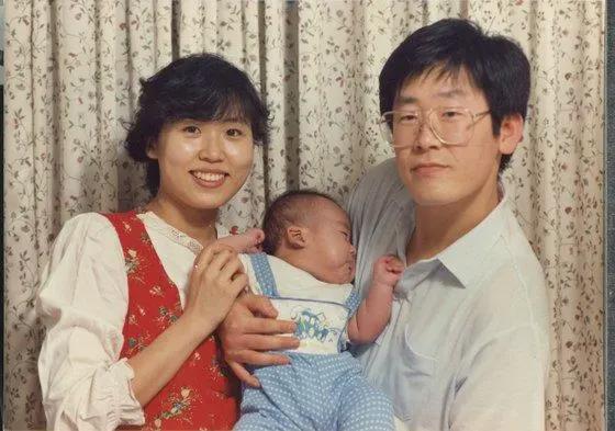 李在明在大学毕业典礼上与父母合照(韩国《中央日报》)
