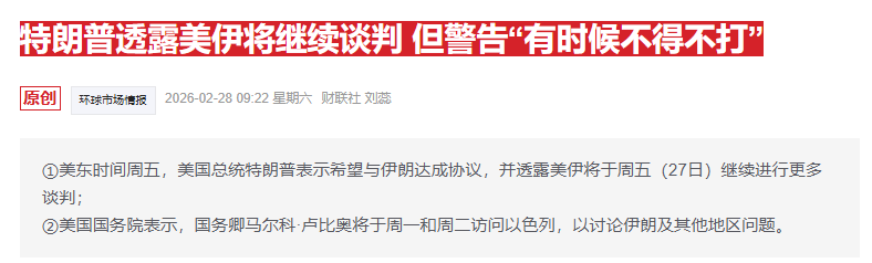 另外,据报道,美东时间周五,美国总统特朗普在白宫外对记者表示表示,他希望与伊朗达成协议,并透露美伊将继续进行更多谈判。据央视新闻报道,特朗普称,他对当前局势“并不满意”,但强调仍希望通过谈判解决问题。在被问及是否会对伊朗动用军事力量时,他表示“并不想这样做,但有时候不得不这么做”。