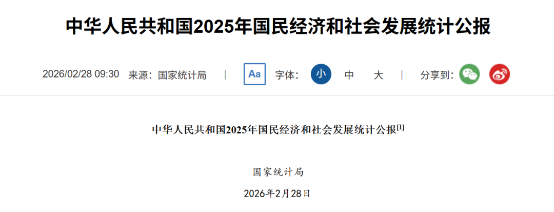 没错,就是这份2 025年国民经济和社会发展统计公报。
