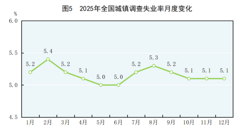全年全国城镇调查失业率平均值为 5.2% ;年末全国城镇调查失业率为 5.1% 。