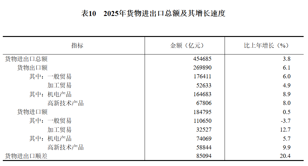 2025年,我国全年货物进出口总额达到了45.47万亿,比上年增长3.8%。
